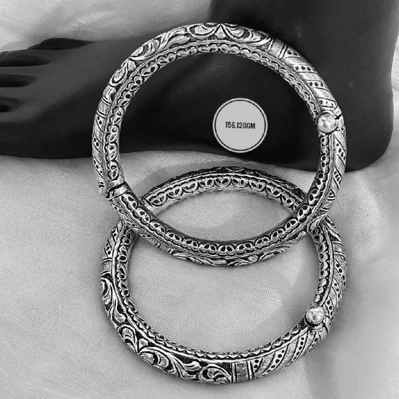 Elevate your style with this 92.5 pure silver leg kada, featuring an intricate antique design and secure screw closure.