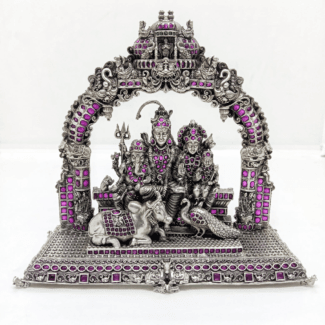 Magnificent pure silver idol of shiva with ma parvati and their son-201316