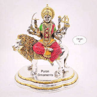 Hallmarked silver idol of shera wali mata in antique high fine work-178834