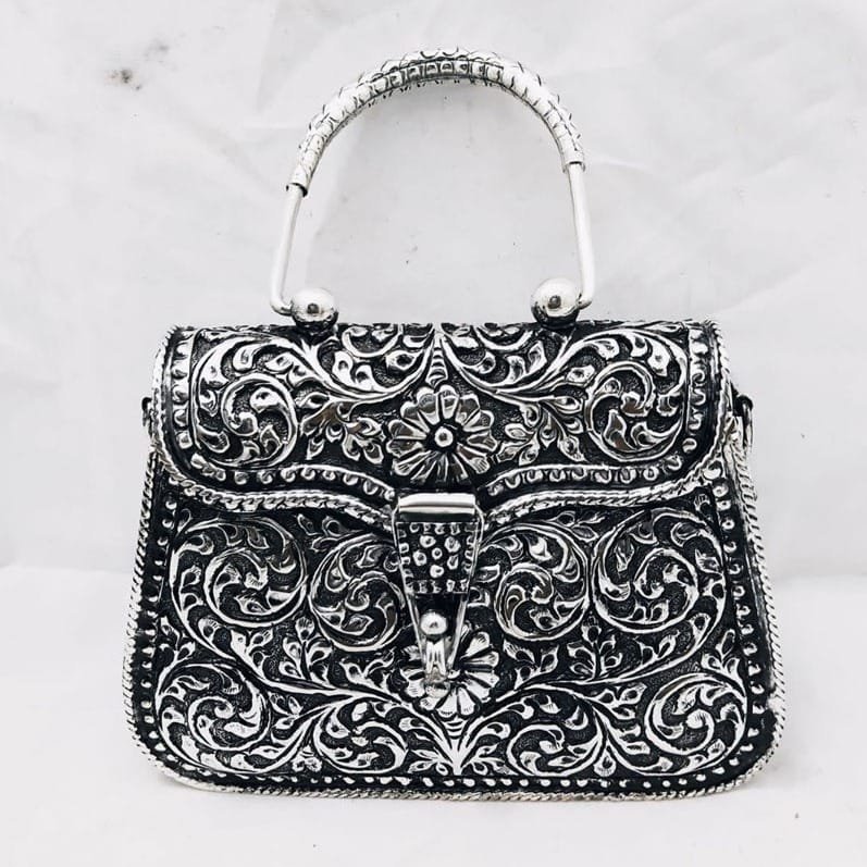 Mesmerizing real silver heirloom purse bag in fine carvings |puran-160552
