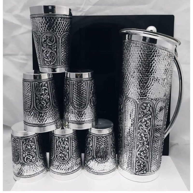Pure silver Royal jug glasses set with Leaf Carvings