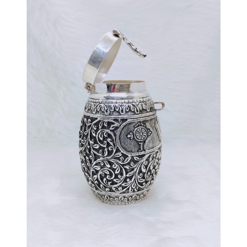 Hallmarked silver box for gifting in antique floral carvings by puran-178843