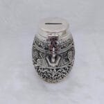 Hallmarked silver piggy bank for kids in antique fine work-178937