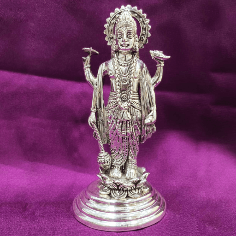 High Quality Pure Silver Vishnu Idol In Antique Work-230639