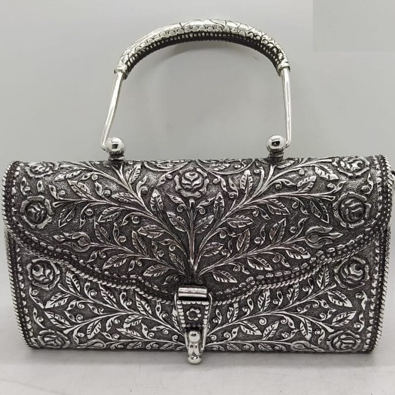 Maanniya hallmarked silver shoulder bag in easy to carry handle-153030