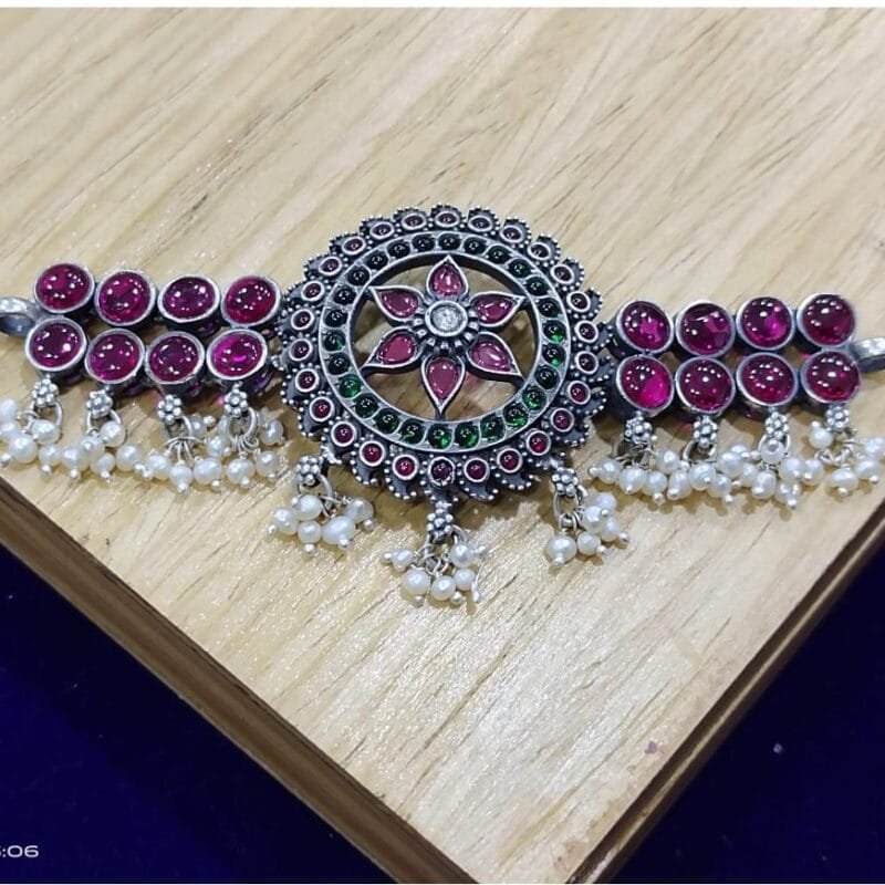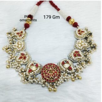 Unique Pure Silver Kundan Nakhra Necklace With Real Pearls-207685