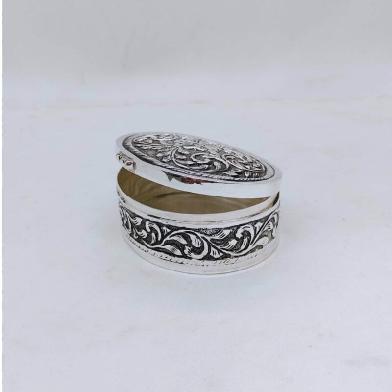 Hallmarked silver box for gifting in antique floral carvings by puran-178843