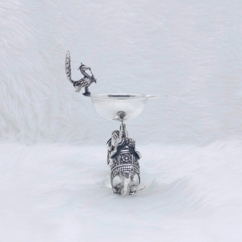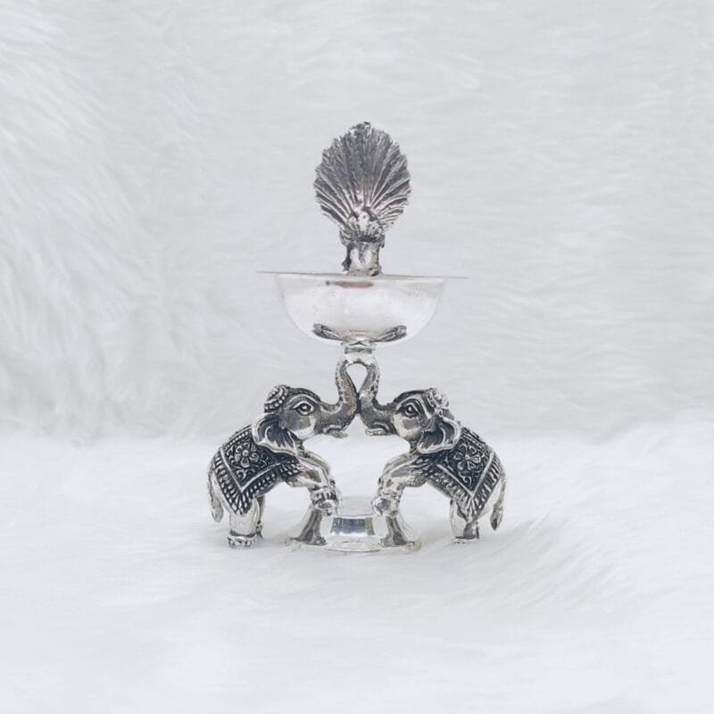 Real silver deepak with elephant base in antique finish-178911
