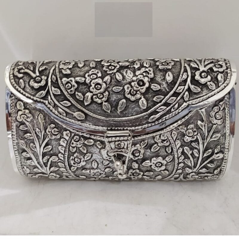 Rose Motif Carving Clutch?In Hallmarked Silver By Puran-153042