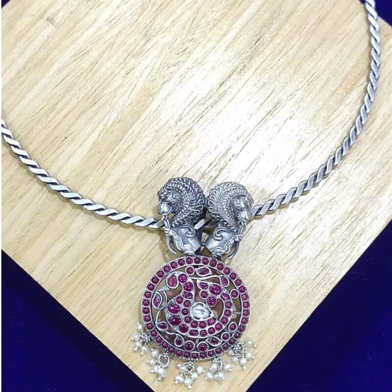 Vintage Look Pure Silver Necklace In Antique Work-230403